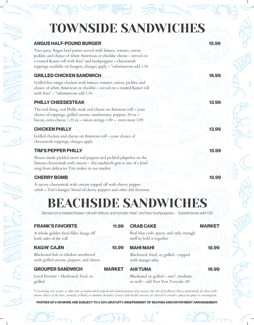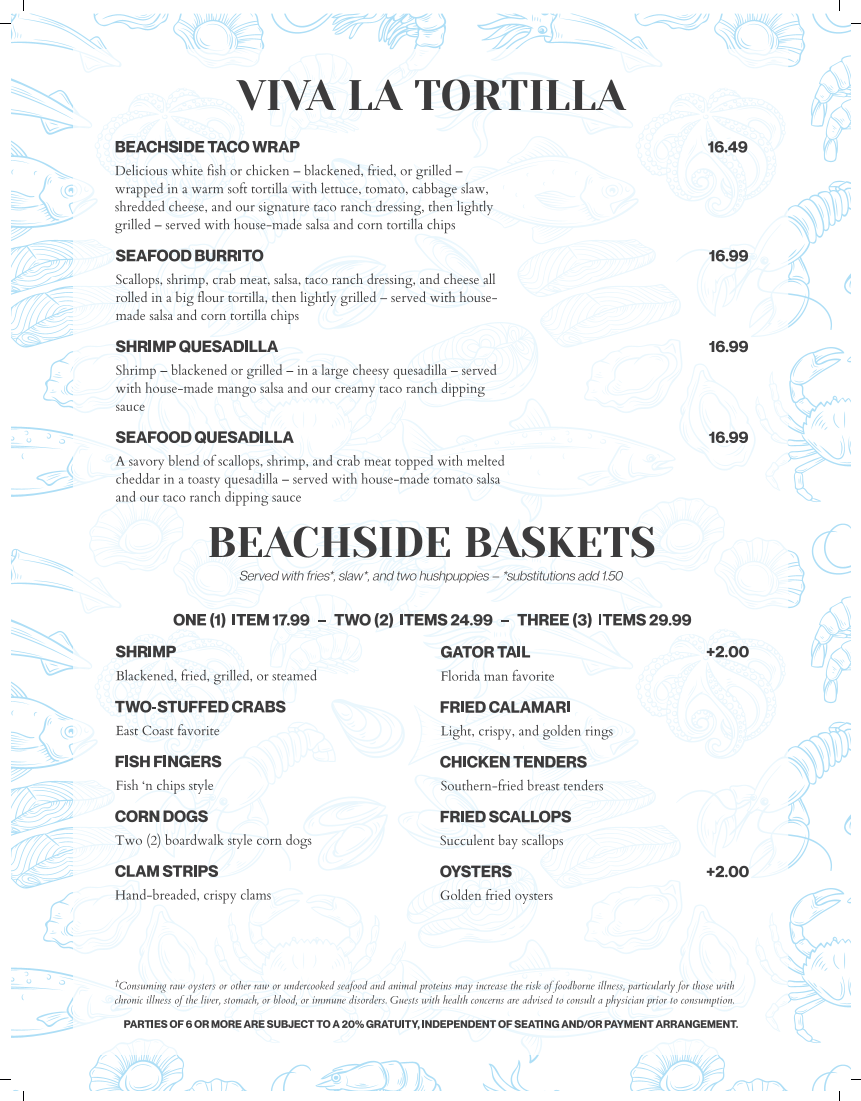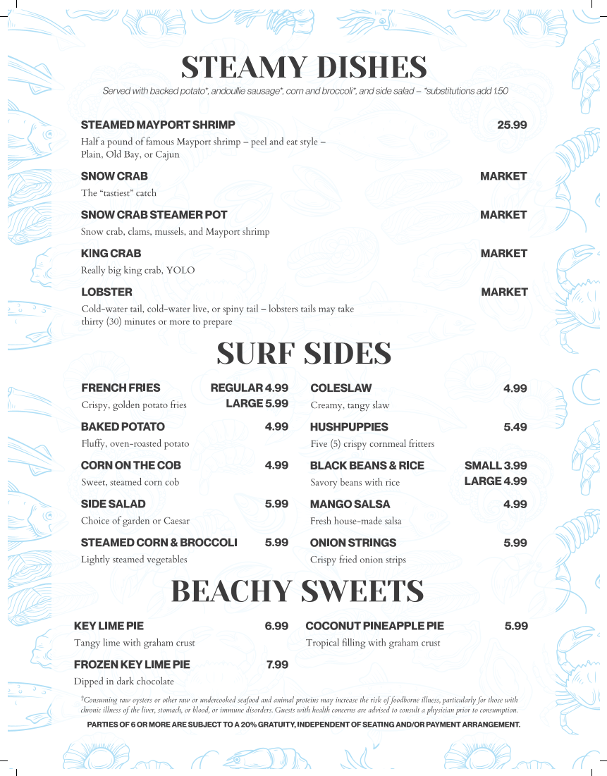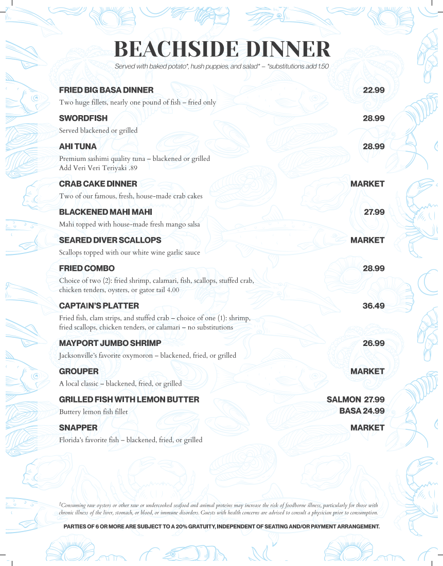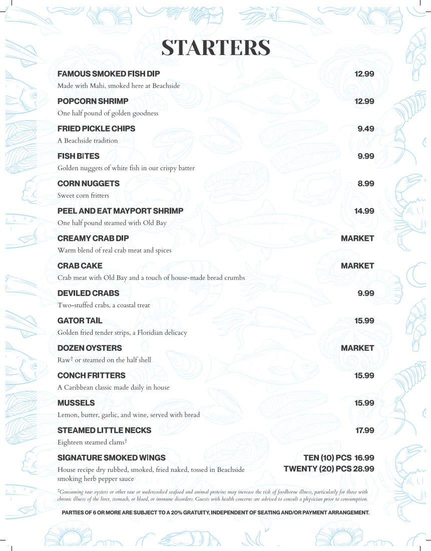 At Beachside Seafood Restaurant & Market Menu, you’ll find a fresh, vibrant mix of seafood favorites with a laid-back, beachy vibe that makes every meal feel like a mini vacation. Located at 120 3rd St S in Jacksonville Beach, this place brings you the freshest catches right off the coast, with a menu that’s as diverse as the ocean itself. Whether you’re craving a classic fish taco or something a little more indulgent like lobster mac and cheese, the options never disappoint. And for those who love to take a taste of the beach home, the market offers a selection of the finest seafood you can take away and enjoy later. It’s all about flavor, freshness, and feeling at ease in this coastal paradise. From casual bites to hearty meals, this spot is perfect for anyone looking to enjoy a taste of the ocean.